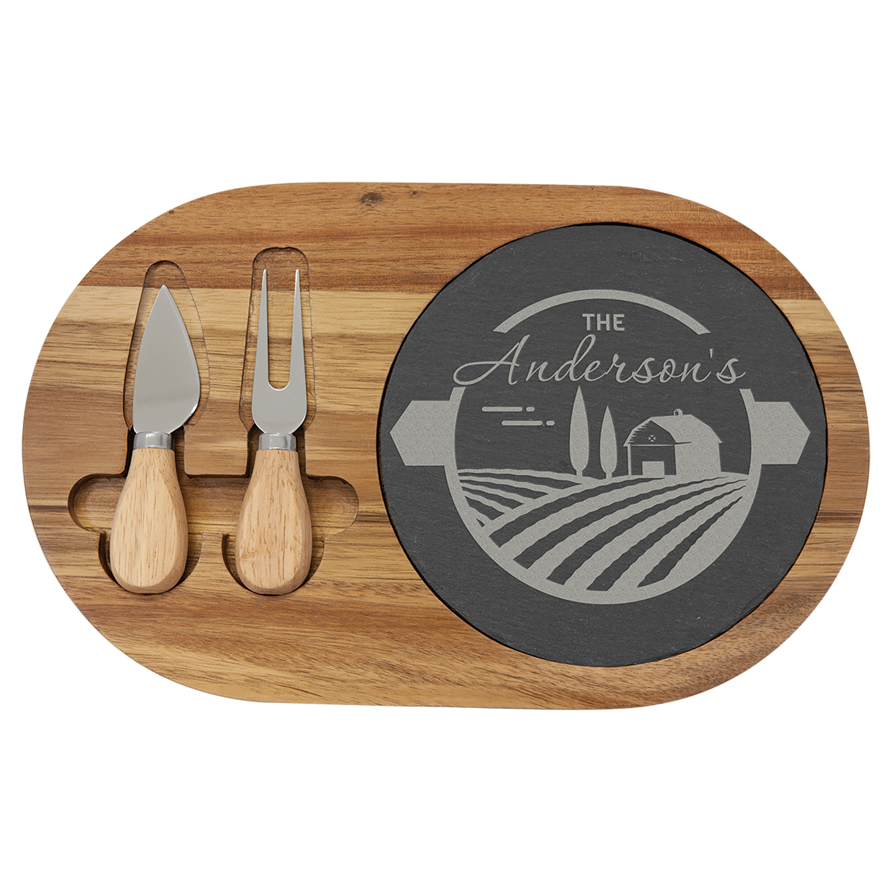 Personalized Acacia Wood Charcuterie Set with Slate Cheese Serving Board